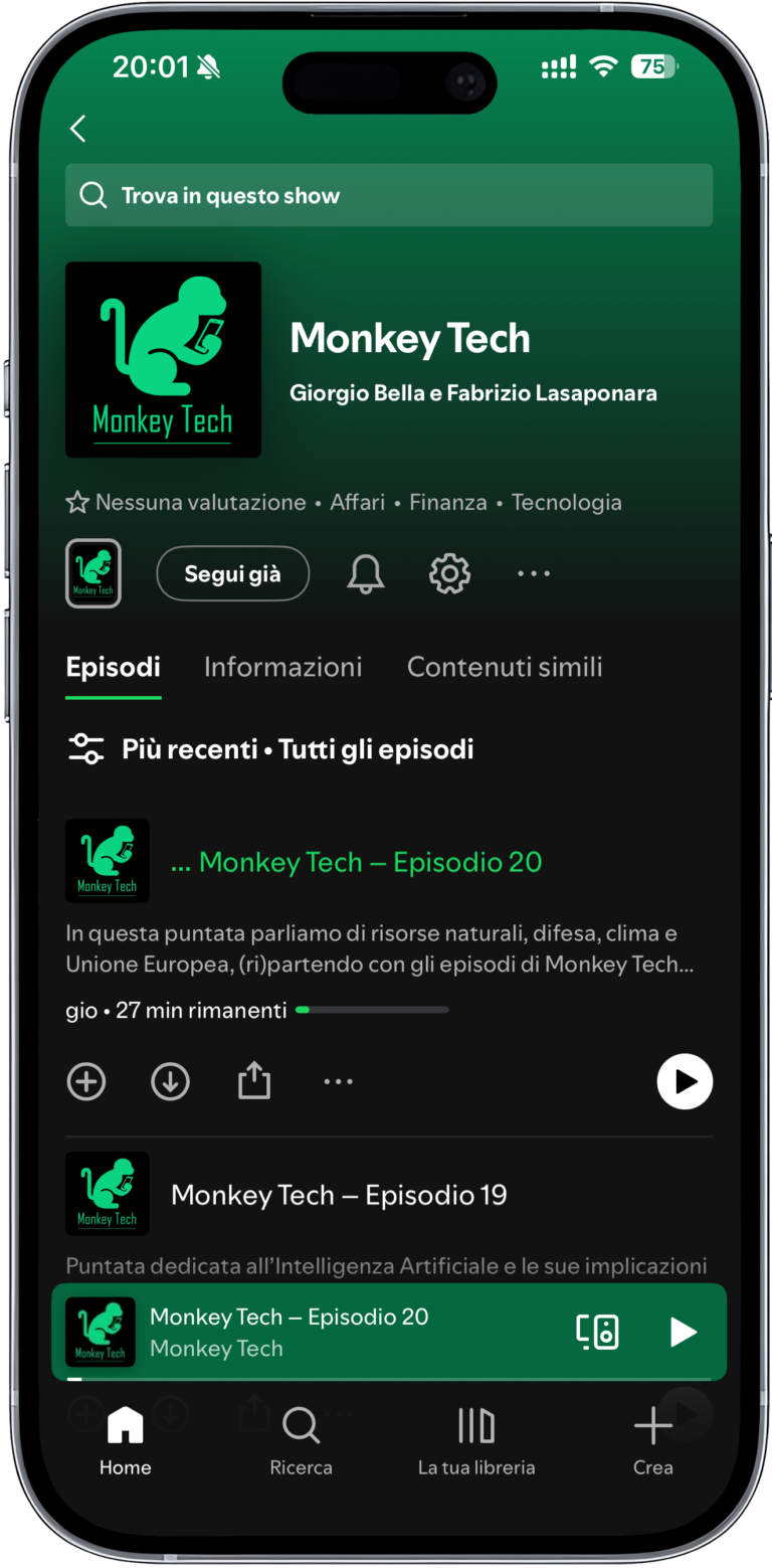 Questo è Monkey Tech: diffusione di conoscenze, notizie e spunti di riflessione in ambito tech, startup e finanza nella forma di un dialogo a parole semplici tra due primati da ascoltare in podcast sulla tua piattaforma preferita.